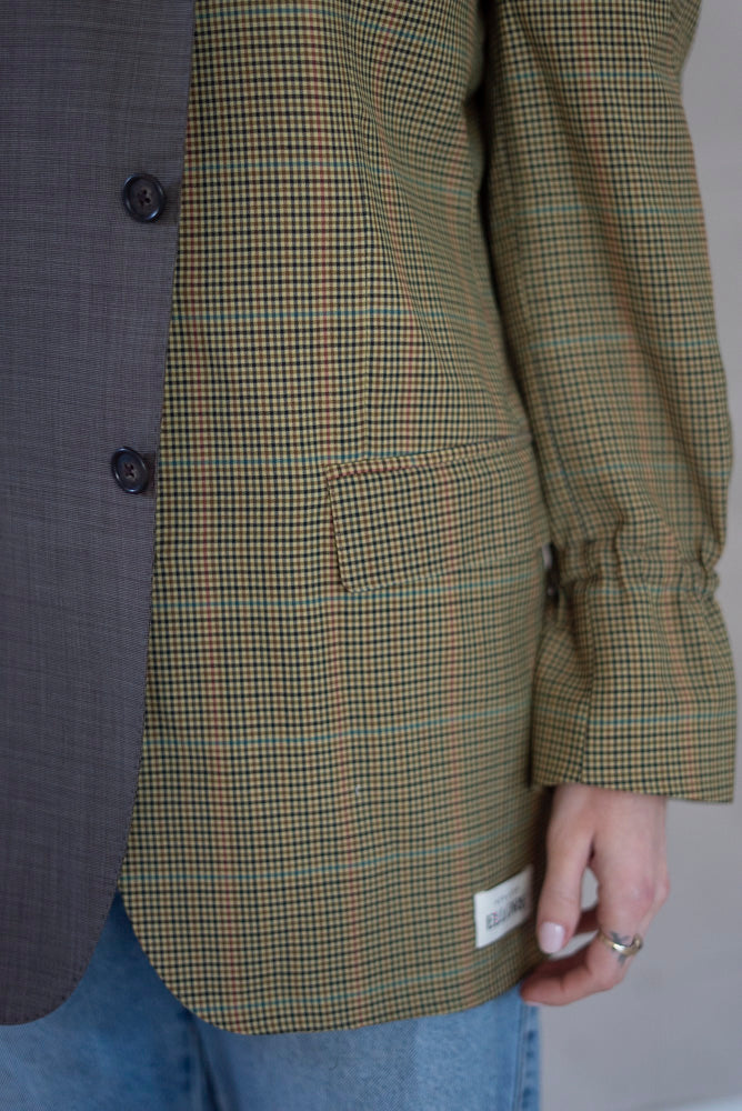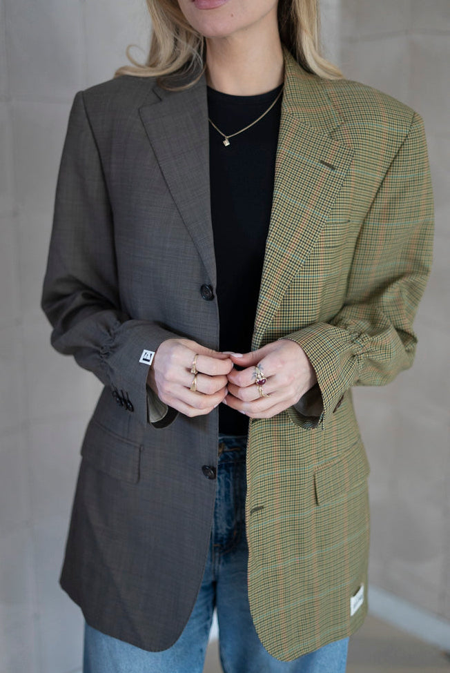 We've combined two carefully sourced vintage blazers to create a one-of-a-kind masterpiece. Featuring elastic details at the sleeves, this blazer is giving a modern twist to traditional tailoring. This unique design will flatter all body types, while the sleeves let you adjust the length to your liking.