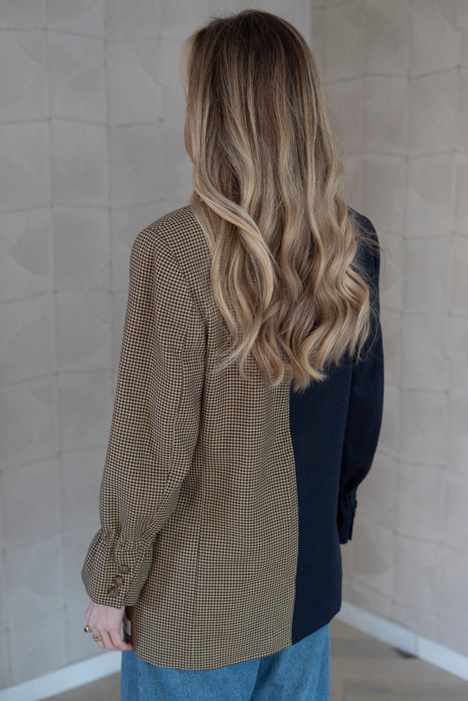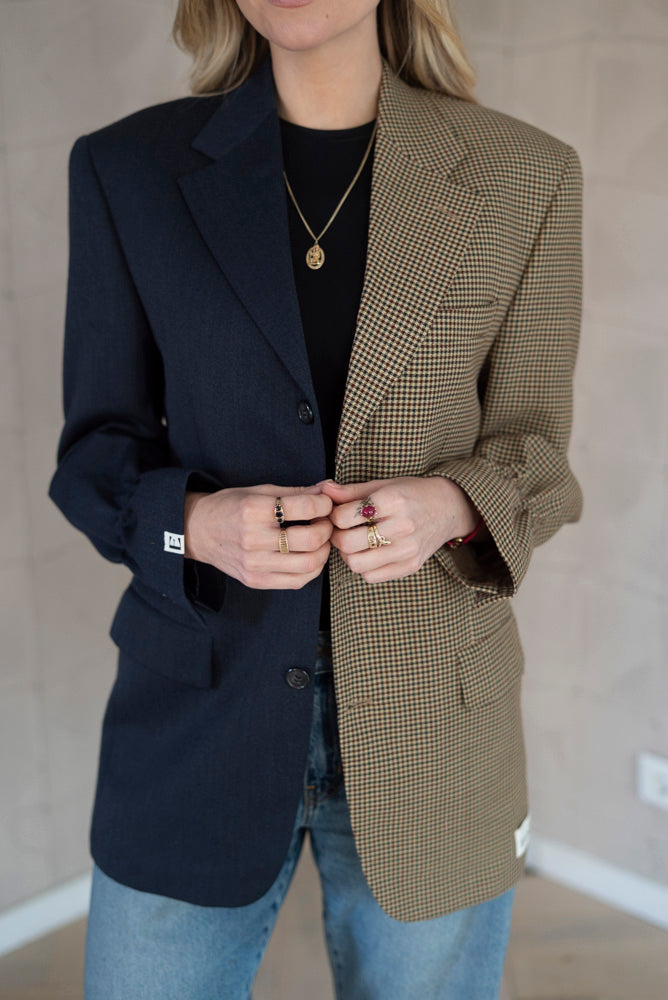 We've combined two carefully sourced vintage blazers to create a one-of-a-kind masterpiece. Featuring elastic details at the sleeves, this blazer is giving a modern twist to traditional tailoring. This unique design will flatter all body types, while the sleeves let you adjust the length to your liking.
